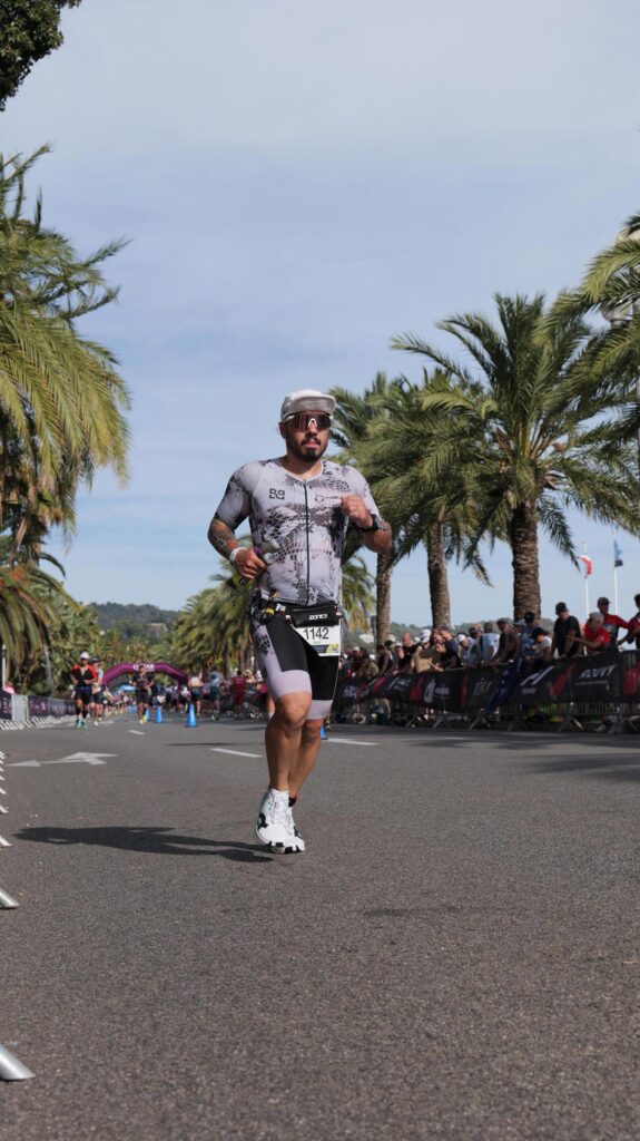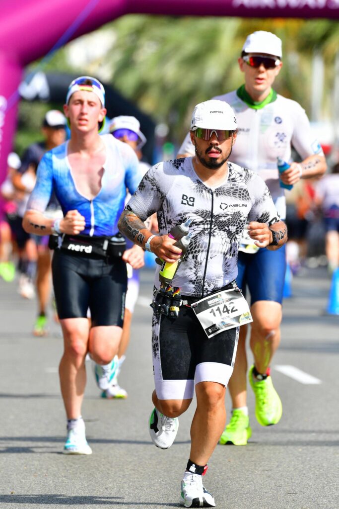 Going into the run, I was actually looking forward to it. My coach and I had been focusing on building my run volume this season since it’s been my weakest leg (no pun intended), especially after my hip injury in May, as it limited how hard we could push in the training. The course was a four-loop layout with three aid stations, and the atmosphere was electric. The promenade was buzzing, with DJs lining the streets, cameras everywhere, crowds cheering; it honestly felt like a party, and the energy certainly made it easier to fight off any dark thoughts.